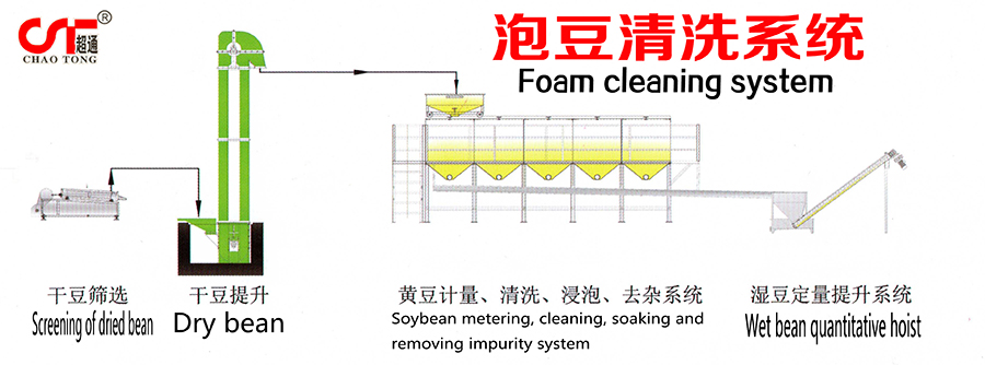 根據(jù)后續(xù)產(chǎn)品和產(chǎn)量選擇不同大小和數(shù)量的泡豆桶,目前可增加黃豆滅酶裝置或全自動浸泡、清洗、翻豆控制系統(tǒng)