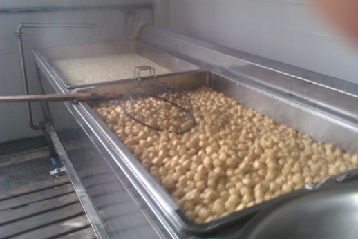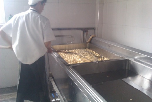 該機(jī)是在傳統(tǒng)電炸鍋基礎(chǔ)上添加油水分離機(jī)構(gòu)和安裝了蒸汽加